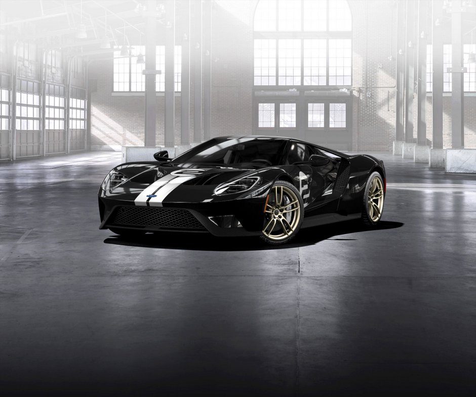 Ford GT, Cenevre’de Ford GT ’66 Heritage Edition görünümlü sınırlı edisyonu ile sergileniyor. Model, gümüş şeritli ve karbon fiber parlak veya mat yüzeyli Gölge Siyahı dış yüzeyi; Buz Beyazı #2 tavan ve kapı grafikleri; ve altın saten şeffaf kaplamalı 20 inçlik tek parça alüminyum jantları ile Ford’un 1966 Le Mans zaferini yad ediyor.